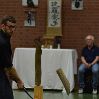 Besondere "Highlights" des Abends waren zum einen der Kampf in japanischer Rüstung (Yoroi) und die am Ende vorgeführten Schnitttests mit scharfen Klingen.